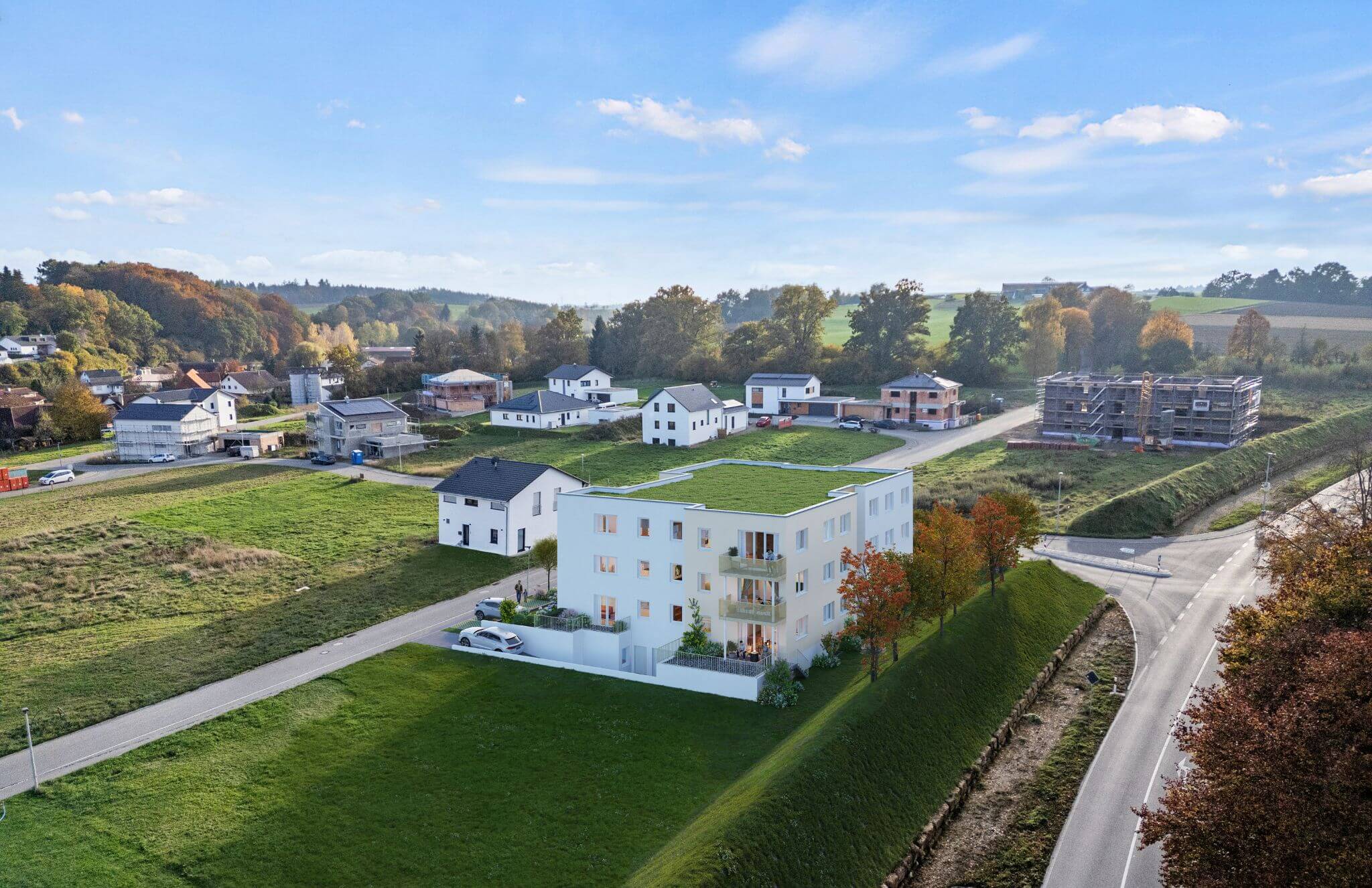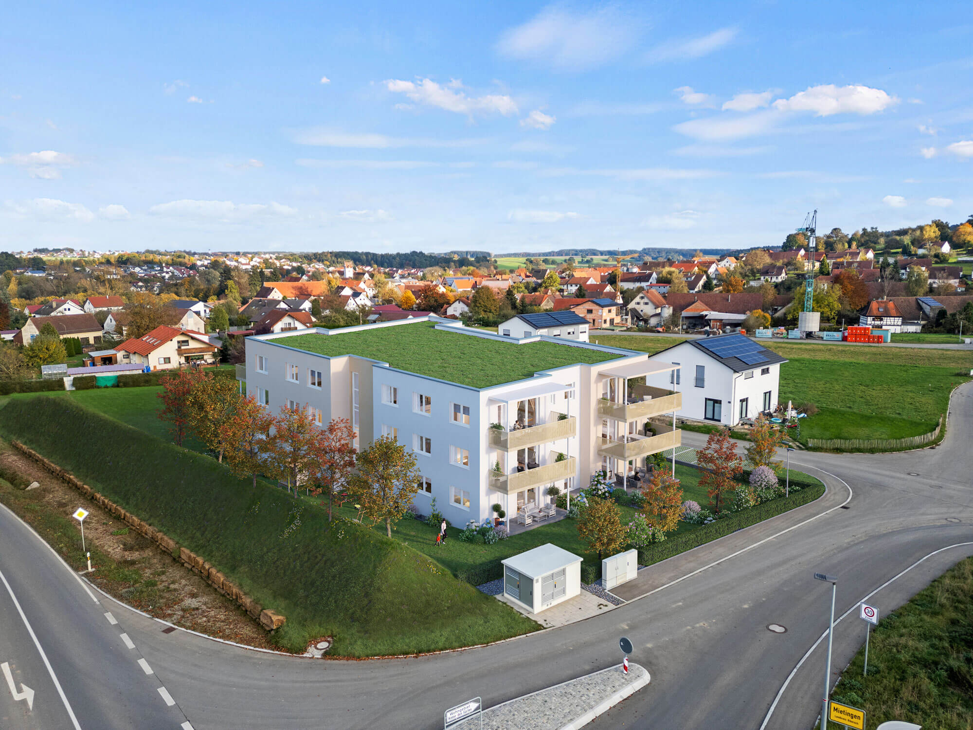 Modernes Neubauprojekt mit 12 Eigentumswohnungen am Ortsrand von Mietingen – grünes Wohnen mit Komfort, energieeffizienter Technik und vielfältigen Wohnungsgrößen.